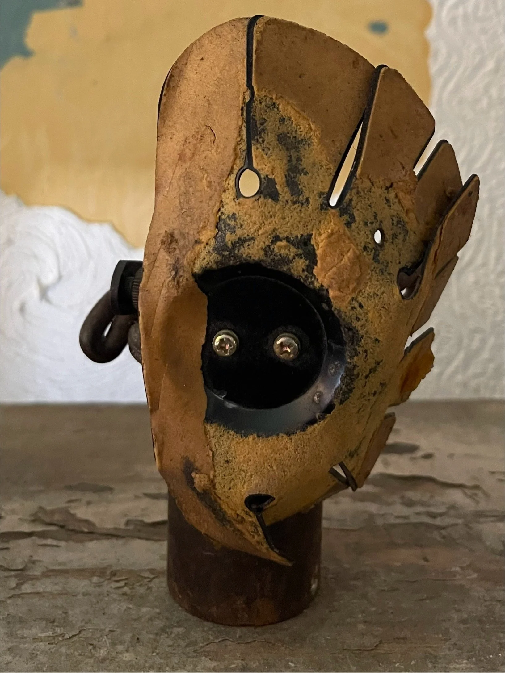 _____________________________________________________________________________________________Phillip Phillip De Loach’s studio in the funky old Liberty Paint Building is stuffed with innumerable “found” objects—concretions of metallic flotsam and jetsam that have washed up around town, and the curious objects that people have given him. At first look this all appears to be clutter, but de Loach explains the meaning he finds in his uncanny assemblages, and these small sculptures begin to possess a totemic significance. He moves about the space like an ecstatic grasshopper, fascinated with everything around him. His earlier work—paintings and pastels—line the walls, as well as paintings and prints by other artists; he describes these other artist’s work with an exuberant generosity not common among artists. Visiting his studio was a delight—as well as the bedecked car parked outside—which is an assemblage, too.
