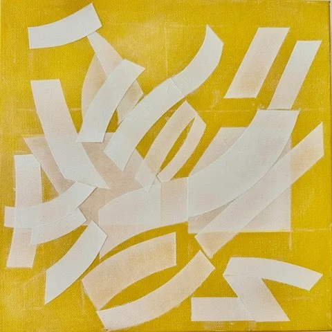 I do enjoy visiting Jane Ehrlich’s studio. The conversation is real, relevant, and often fun. I have previously written about Ehrlich’s "disappearing paintings" of 2019— loose gauzy translucent white swaths against a single color background. She went on to paint light swaths which were more sharply delineated. Then Ehrlich defied her monochromacy by adding an additional swath of a differing color . Given how strict and thoughtful her abstraction is, that color swath is jarring.